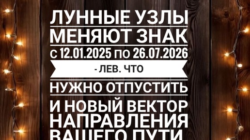 🔥ЛУННЫЕ УЗЛЫ МЕНЯЮТ ЗНАК с 12.01.2025 по 26.07.2026 - ЛЕВ. Что нужно ОТПУСТИТЬ и новый вектор НАПРАВЛЕНИЯ вашего пути.