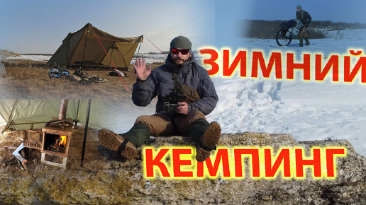 A man builds a tent in the mountains in winter - Зимний Кемпинг
