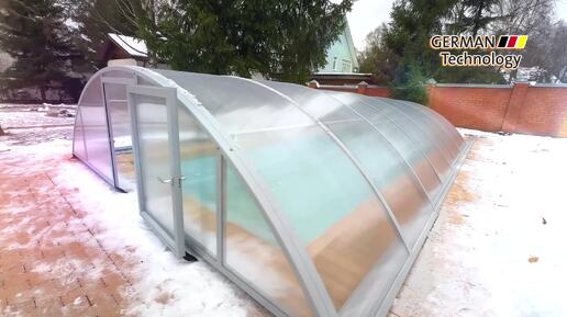 Павильон для бассейна Размеры 8,5х4,65х1,35м. Цвет Серебро. Сотовый поликарбонат
