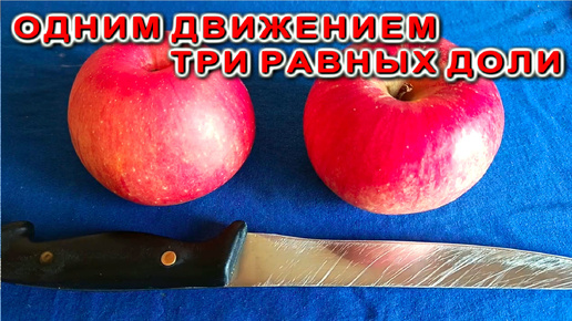 Как разделить два яблока на троих одним движением ножа?
