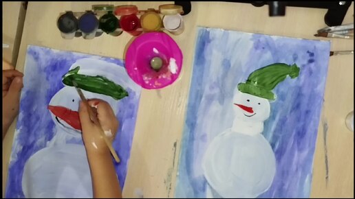 Рисуем с детьми. Снеговик гуашью. Просто.