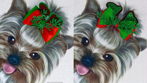 МК. Бантики для собачки, новогодние.
