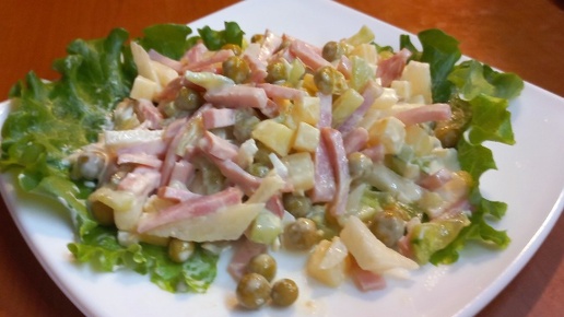 Салат Оливье с новой заправкой и окороком