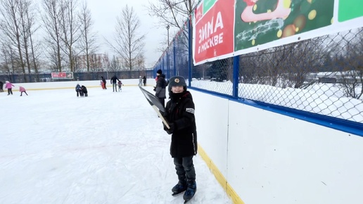 Первый раз катаюсь на коньках! #коньки #каток #клюшка #хоккей