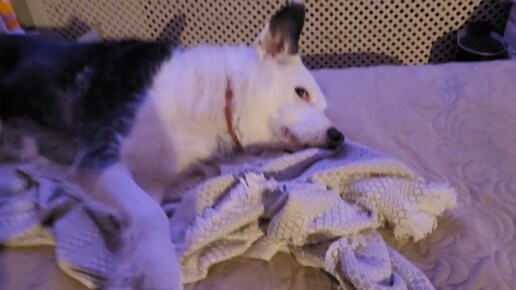 Говорят, собакам нельзя валяться на кроватях. Хорошо, что собаки не в курсе. Пса зовут Север. Он был приютским, а стал домашним