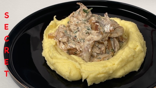 Бефстроганов из курицы за 18 минут, с грибами в сливочном соусе и с картофельным пюре на гарнир