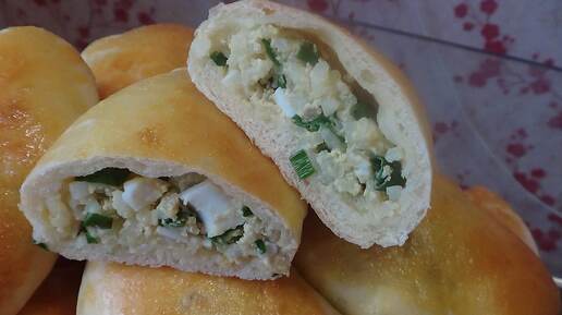 Пирожки печёные с яйцом, рисом и зелёным луком