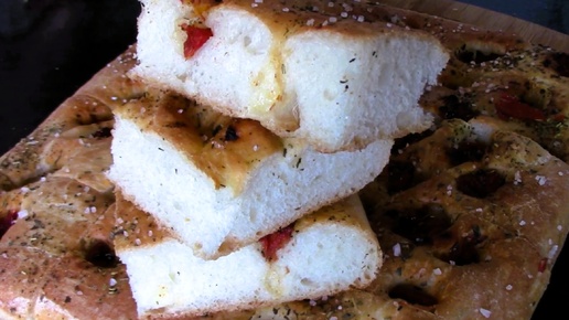 Невероятно вкусная фокачча с итальянскими травами и помидорами.