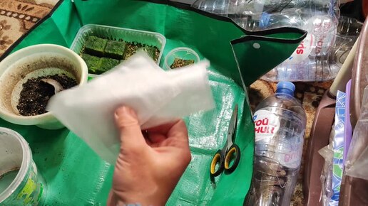 Пересаживаю дихондры Серебристый Водопад и Изумрудный Водопад (Агрофирма Аэлита) в тканевые мешочки для рассады 0, 4 литра.