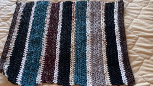 Коврик - половичек связанный из ниток, нарезанных из старых вещей. Вязание крючком.#вязаниекрючком #коврикиз старья