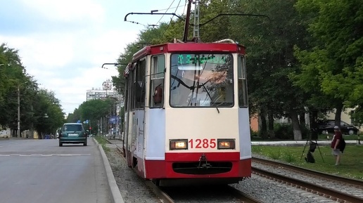 Трамвай Челябинска 71-605* мод. Челябинск №1285 маршрут 22 на осатновке "Завод металлоконструкций"
