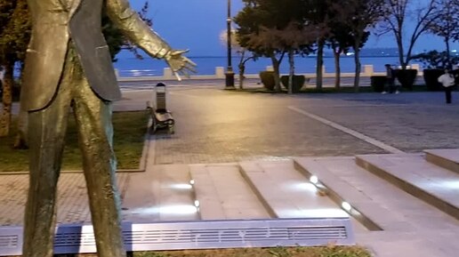 Памятник Муслиму Магомаеву на берегу Каспийского моря.