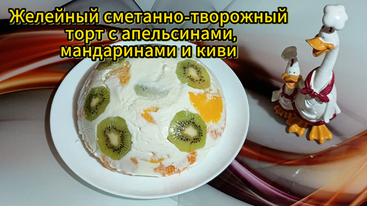 Желейный сметанно-творожный торт с апельсинами, мандаринами и киви.