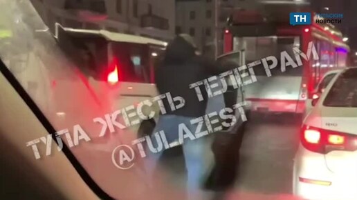 В Туле на Первомайкой улице двое мужчин устроили драку во время пробки