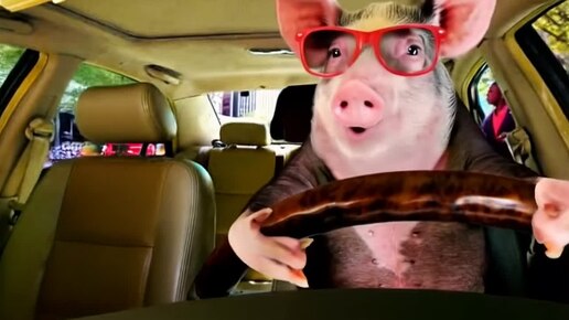 Свинья читает рэп за рулем автомобиля)