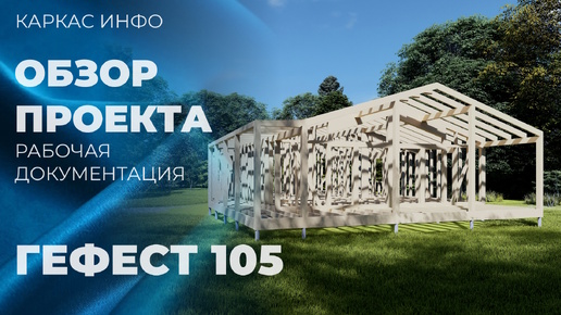 Краткий обзор проектной документации одноэтажного каркасного дома 14х9,2м, с террасой Гефест 105