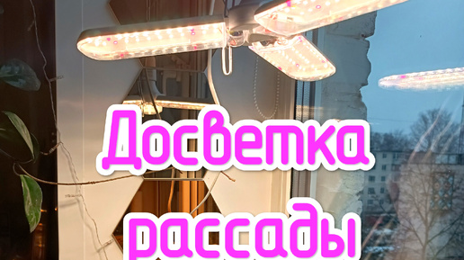 Досветка рассады цветов. Зелень на подоконнике.