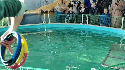 Экспозиция Ярославского зоопарка " Байкальские нерпы", игра в кольца (фрагмент - 2)