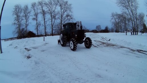 Потепление приходит с ветром, почистил снег после морозов. Трактор Т-40АМ 10 января