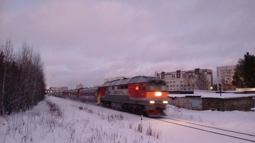 Великолепный ТЭП70-0118 с пассажирским поездом №097Я Санкт-Петербург-Сыктывкар и приветливой бригадой