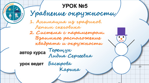 Урок №5. Уравнение окружности. Анимация со снеговичком из окружностей. Система с параметром. Взаимное расположение квадрата и окружности.