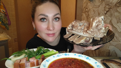 МУКБАНГ/БОРЩ💥ГРУДИНКА, САЛО, ЛУК И МЯСО НА КОСТИ😋ОБЖОР НЕ ПО ДЕТСКИ😅/ПРОБУЮ СНИМАТЬ НА НОВЫЙ ТЕЛЕФОН😊