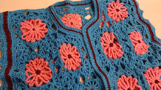 Молодёжная жилетка из бабушкиных квадратов