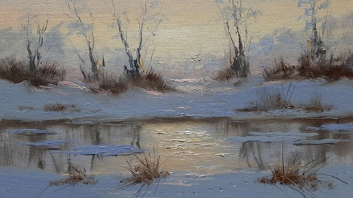 Зимний пейзаж .Живопись маслом