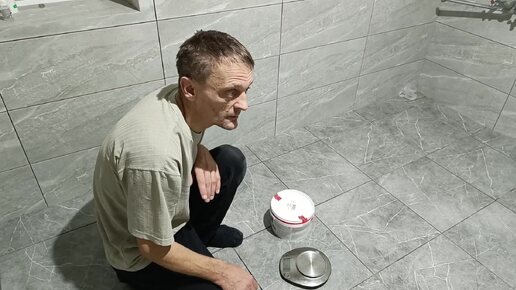Купили и повесили сомнительную люстру для ванной. Затирка швов кафеля эпоксидной затиркой.