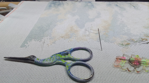 Вышивка крестом. Удлиняю нить. Про натяжку финиша на основу и количество вышивок сразу. Как всегда ни о чем.