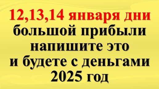 12, 13, 14 января дни большой прибыли, напишите это и будете с деньгами, достатком весь 2025 год