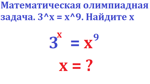 Математическая олимпиадная задача. 3^x = x^9. Найдите х