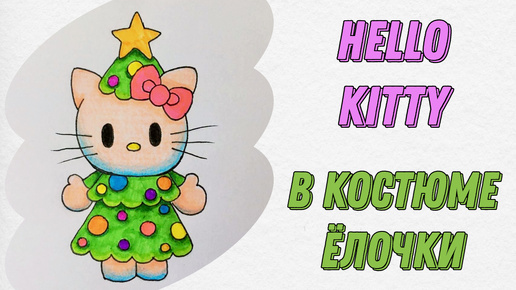 Как нарисовать милую Hello Kitty в костюме ёлочки | Простой рисунок шаг за шагом.