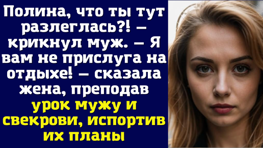 Полина, что ты тут разлеглась — крикнул муж. Я вам не прислуга на отдыхе — сказала жена, преподав урок мужу и свекрови, испортив их планы