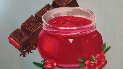 Горький черный шоколад с клюквой. Пишем картину масляными красками. Видео релакс на Дзене. Мой опыт