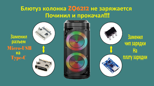 Ремонт блютуз колонки ZQ6212 не заряжается