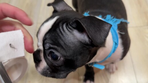 Мотаем ушки Тайсону) Бостон терьер, один из вариантов заматывания, животные смешные собаки уход за щенком