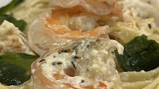 Простой и Вкусный ужин❗️Паста в сливочно чесночном соусе с креветками❗️