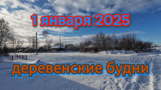Деревенские будни, чистка снега, прогулка по улице, 1 января 2025