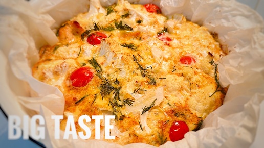 Справится любой: Запеканка из цветной капусты, курицы и томатов черри с укропом.