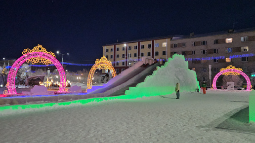 ЖизньСеверян, Северный городок, катаемся на горках Ямало-Ненецкий АО Лабытнанги, Январь 2025 Крайний Север. Город за полярным кругом.
