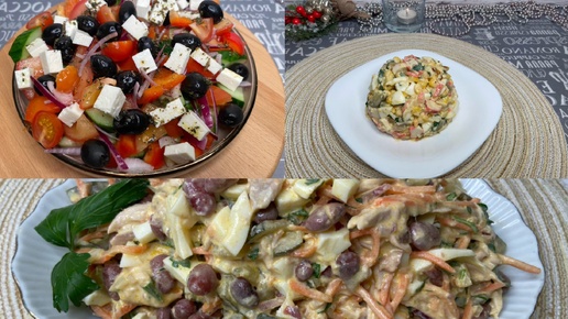 Готовлю сразу ТРИ салата на скорую руку: необычные вкусные и сытные рецепты на старый Новый год #еда #салатсфасолью #быстрыйрецепт #фетто