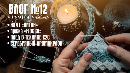 №12 Плед крючком, бисерный жгут, серебряный аромакулон, любимый зеленый аромат, флюориты