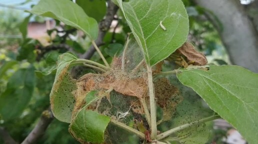 Листья яблонь в паутине.. Что делать!? Яблонная моль-опасный вредитель, который может полностью уничтожить дерево!