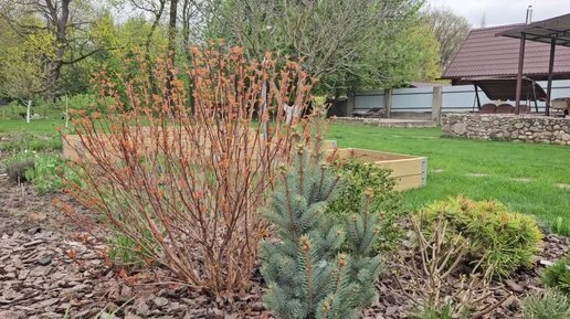 Прогулка по весеннему саду. Хвойные, гортензии, цветущая клумба, яркие кустарники. 13 апреля 2024