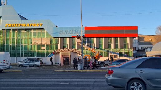 Талдыкорган хожу возле рынка, дворник счищает двор, лепешки