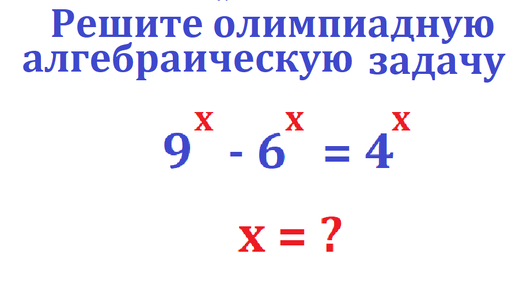 Решите олимпиадную задачу. 9^x - 6^x = 4^x. Найдите х