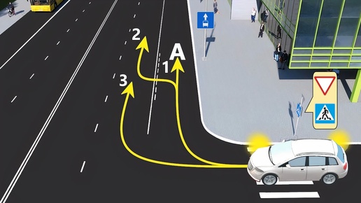 По какой траектории разрешен поворот направо для белого внедорожника?