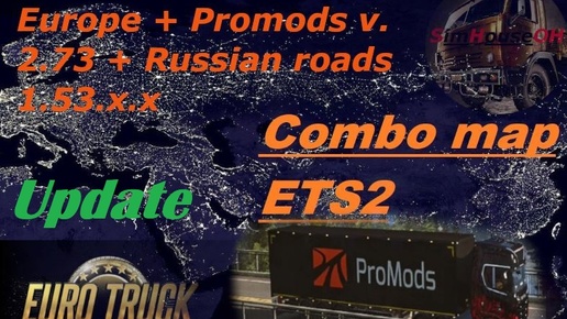Сборка карт ОБНОВЛЕНИЕ Europe + Promods v.2.73 + Russian roads 1.53.x.x 12.1.2025