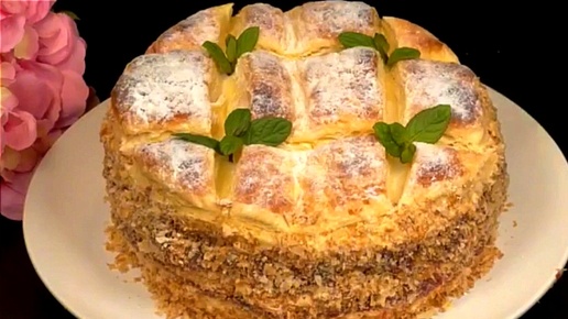 Торт Наполеон с хрустящим слоеным тестом, сливочной начинкой и фруктово-вишневой начинкой гарантированно станет изюминкой вашего стола